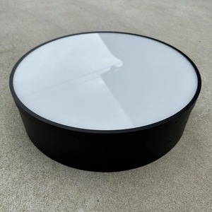 突き出さないタイプの丸型のLED内照式サインになります。素材は亜鉛スチールに塗装されているので、雨風が当たる屋外使用も可能です。