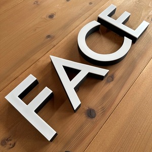 サイン専用3Dプリンターによる製作で金属サインでは再現困難な細い鋭利なデザインも正確にイメージの通り製作可能です。テーパー(台形製作)製作することでLEDを入れるスペースを確保することができます。